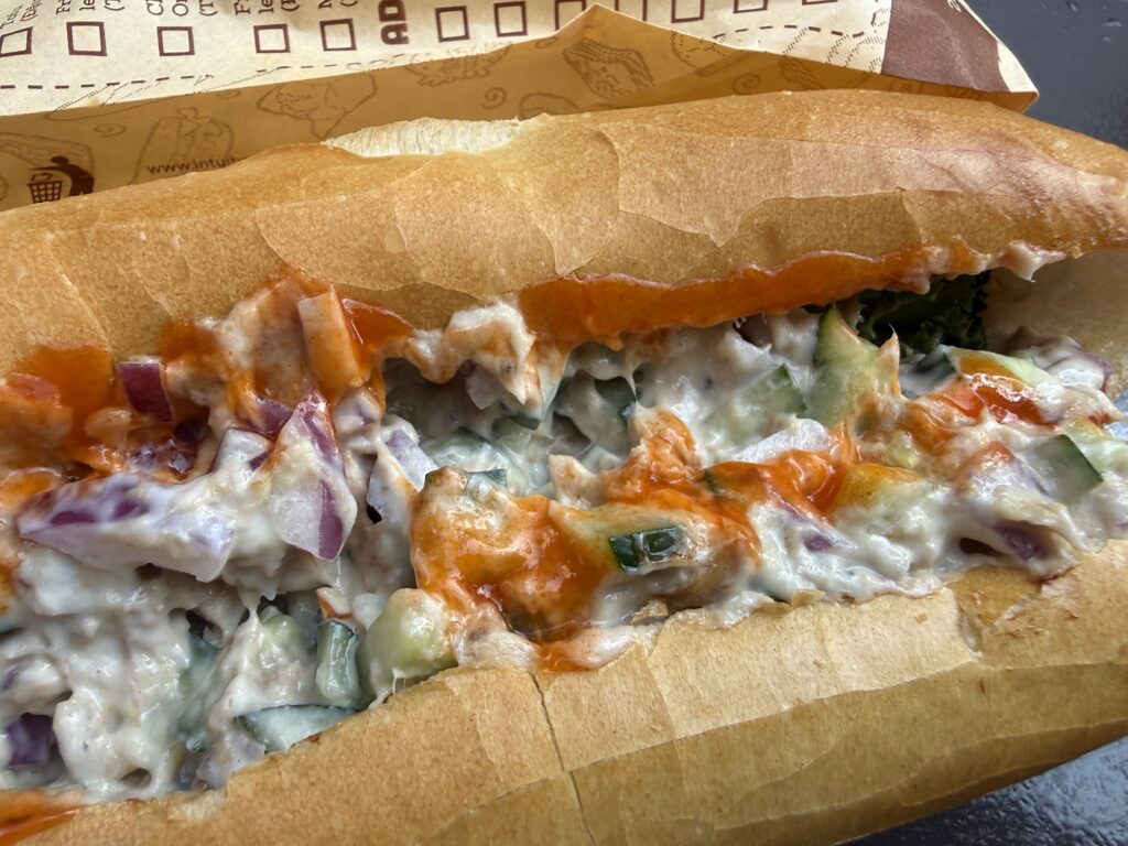 とっても具だくさん。きゅうりとか紫玉ねぎ、そしてツナがぎっしり