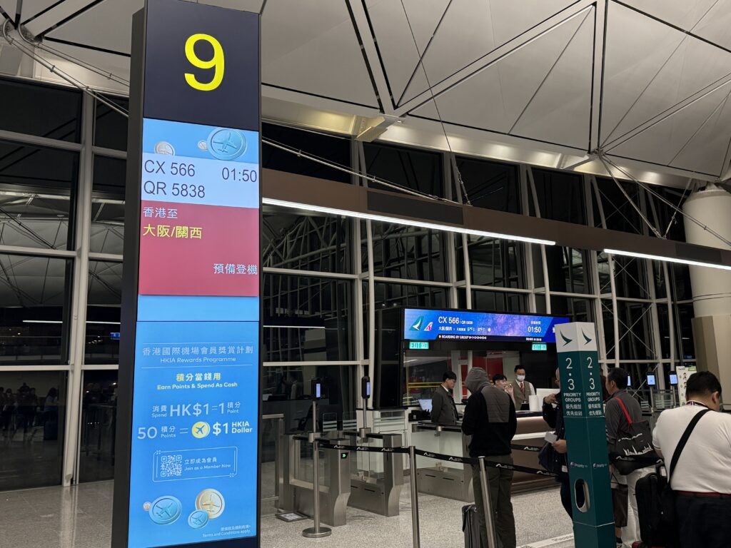 9番ゲートからの出発です。The Pierファーストクラスラウンジからてくてく歩いて10分ちょいで到達。1時50分発の大阪・関西空港行きです。