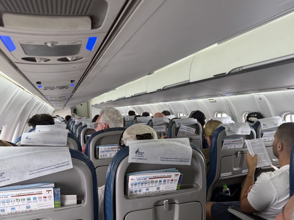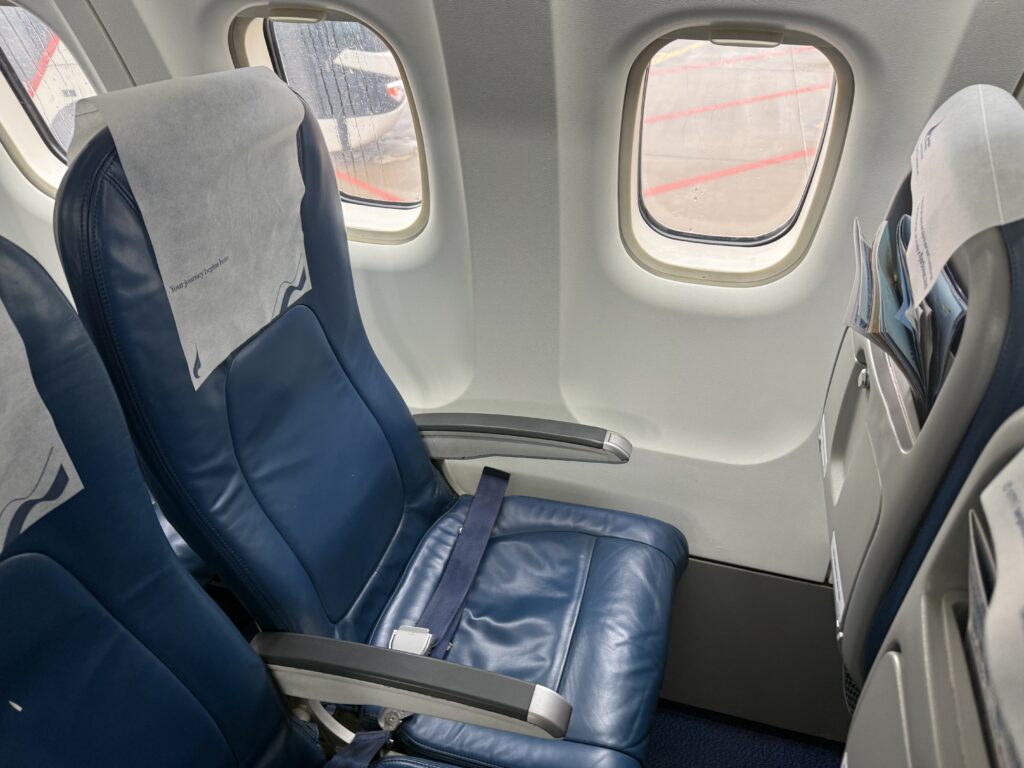 小さい飛行機ですし、やっぱ足元は狭いすね