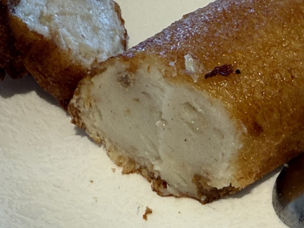 アツアツパンロール、やっぱ揚げたてはおいしい。皮というかパンの部分がパリパリしとる