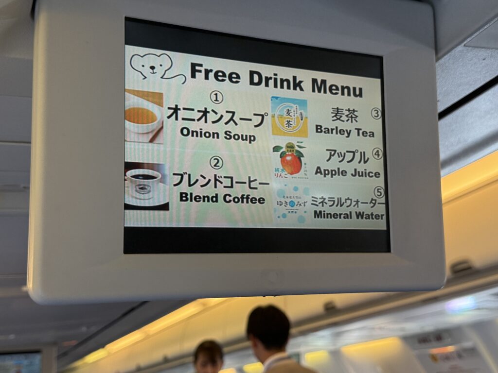 スープを頼んだら、オニオンスープで玉ねぎの甘さをすごく感じた。いつもJALやANAのビーフコンソメだったので、すごく新鮮