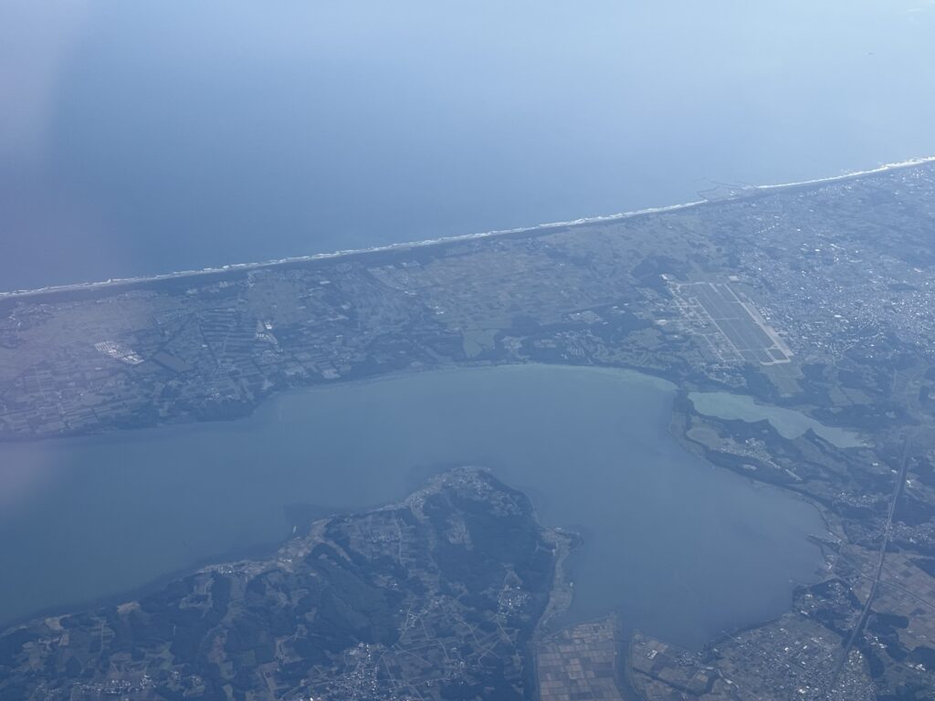 青森県の小川原湖上空を飛行