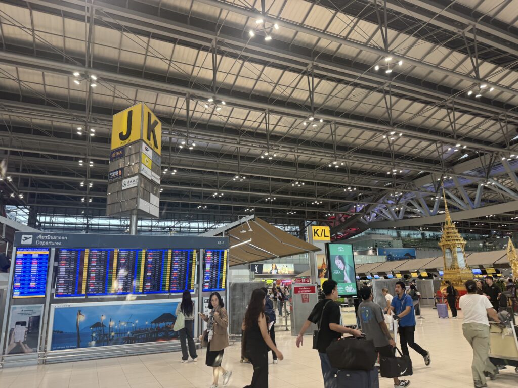 朝7時30分、ウドムスックからロットゥーでスワンナプーム空港へ