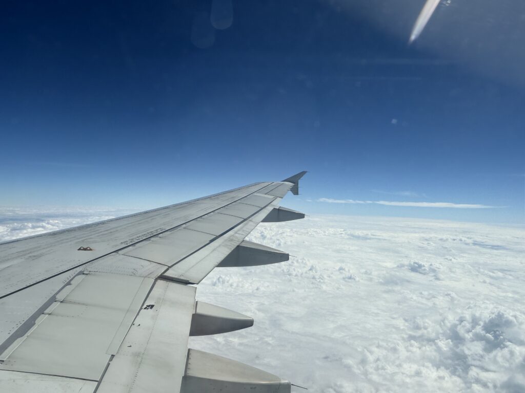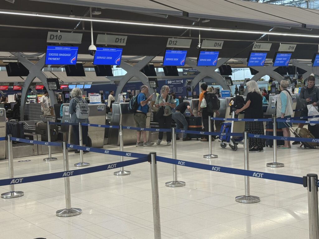 自動チェックイン機ですんなり搭乗券をゲット。長い行列を横目に、出国します