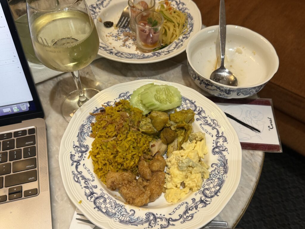 コーラルラウンジでは定評のあるチキンビリヤニと白ワインをいただきました