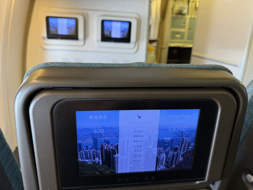 こちらの窓側席。ワンワールド・エメラルドになると毛布やピロー、水が最初から準備されていることに気が付きました。