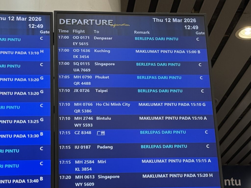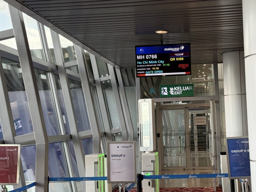 17時10分発のマレーシア航空ホーチミン行きに搭乗します。まだゲートは決まっていませんが、Gとのことでサテライトではなく、メインターミナル。