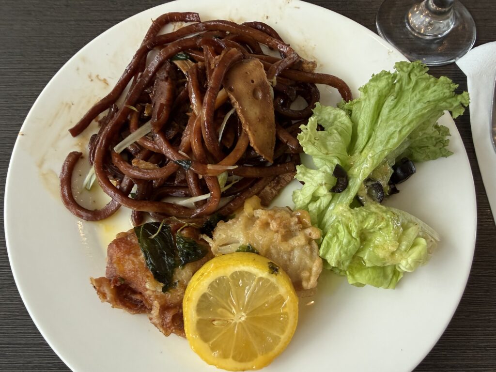 焼きそばのようなホッケンミーとレモンフィッシュ 味はOK