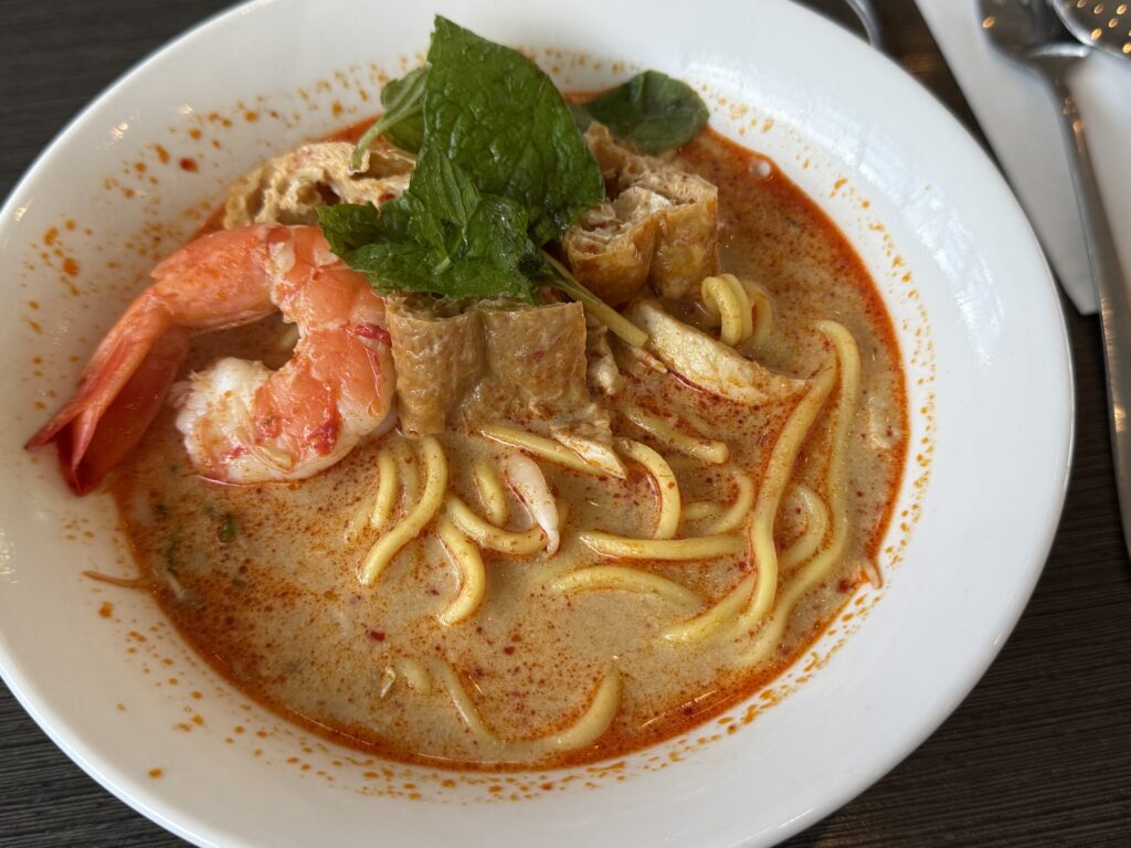 作ってもらったカレーラクサ。ラウンジのラクサにしては、かなりおいしい部類