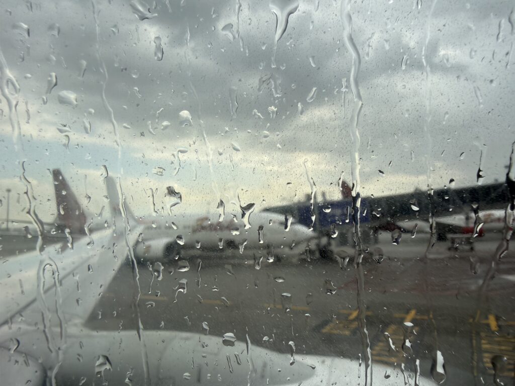 搭乗したら雨が降り出しました