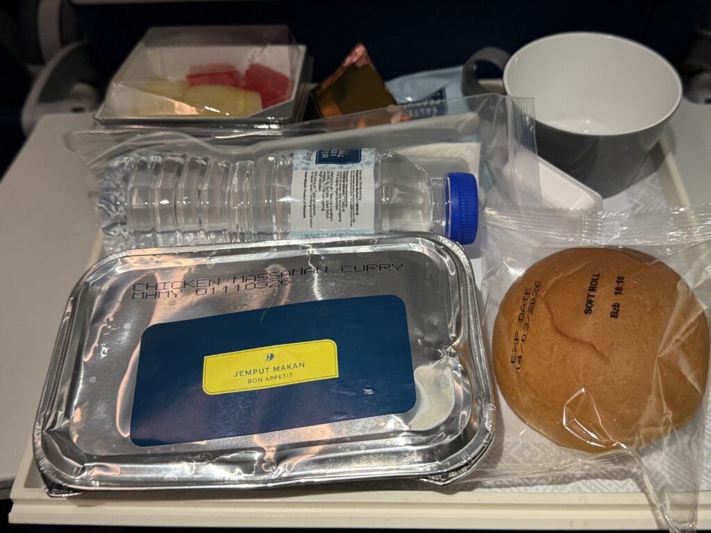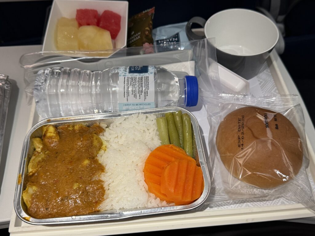 マレー風カレー。マレーシア航空のミールは色目が地味です。味はふつー