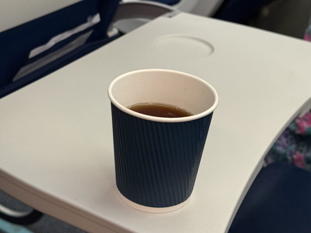 食後にコーヒーをいただく。隣もその隣も空席のため、窓はなくてもゆったり