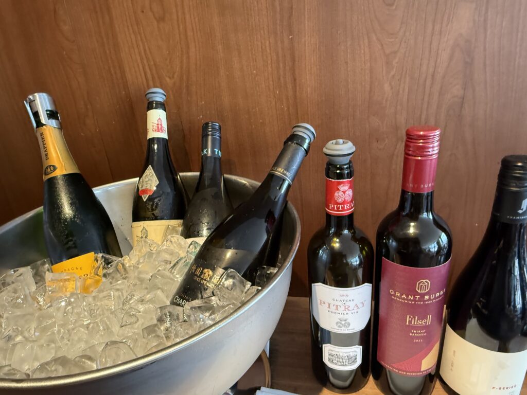 ワインも豊富。しかしここはビジネスクラスラウンジなので、ファーストクラスラウンジのものとは違うラインナップ