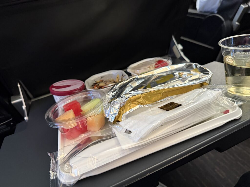 エコノミーにはない、スリッパもあります。至れり尽くせりです