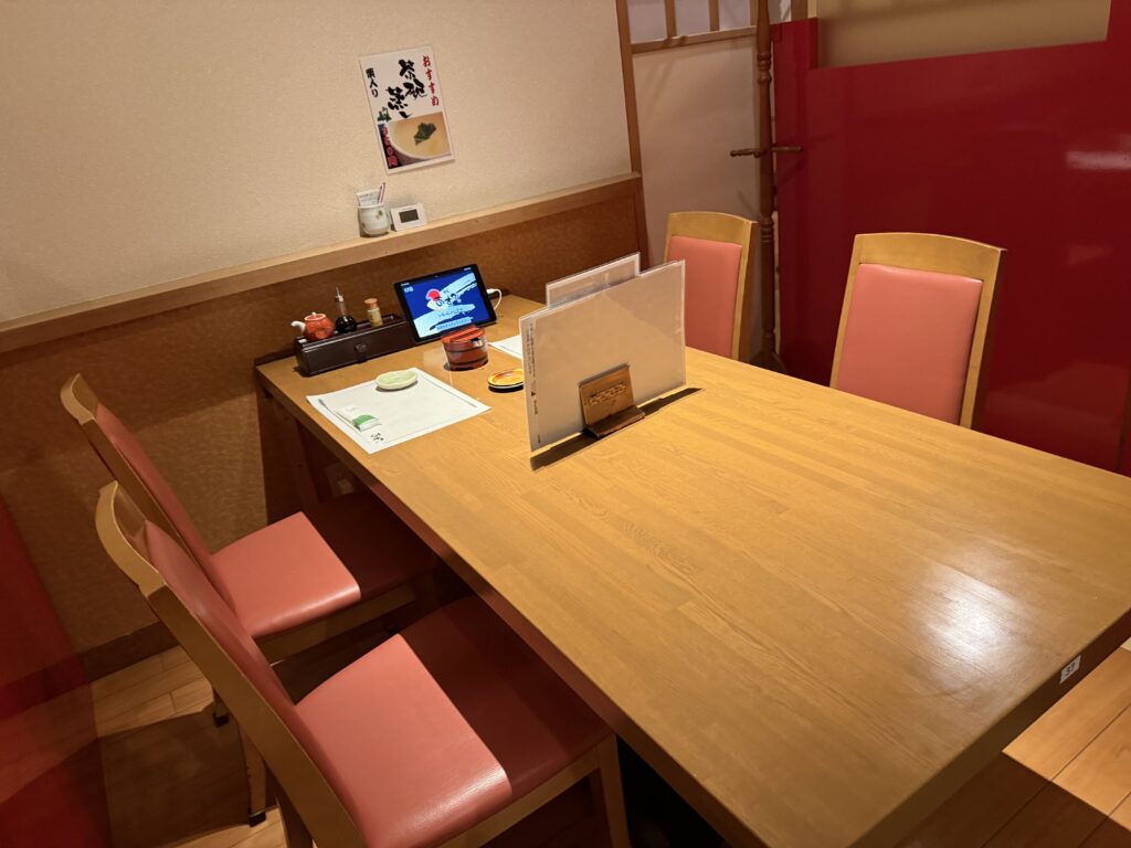 奥の方のテーブル席へ
