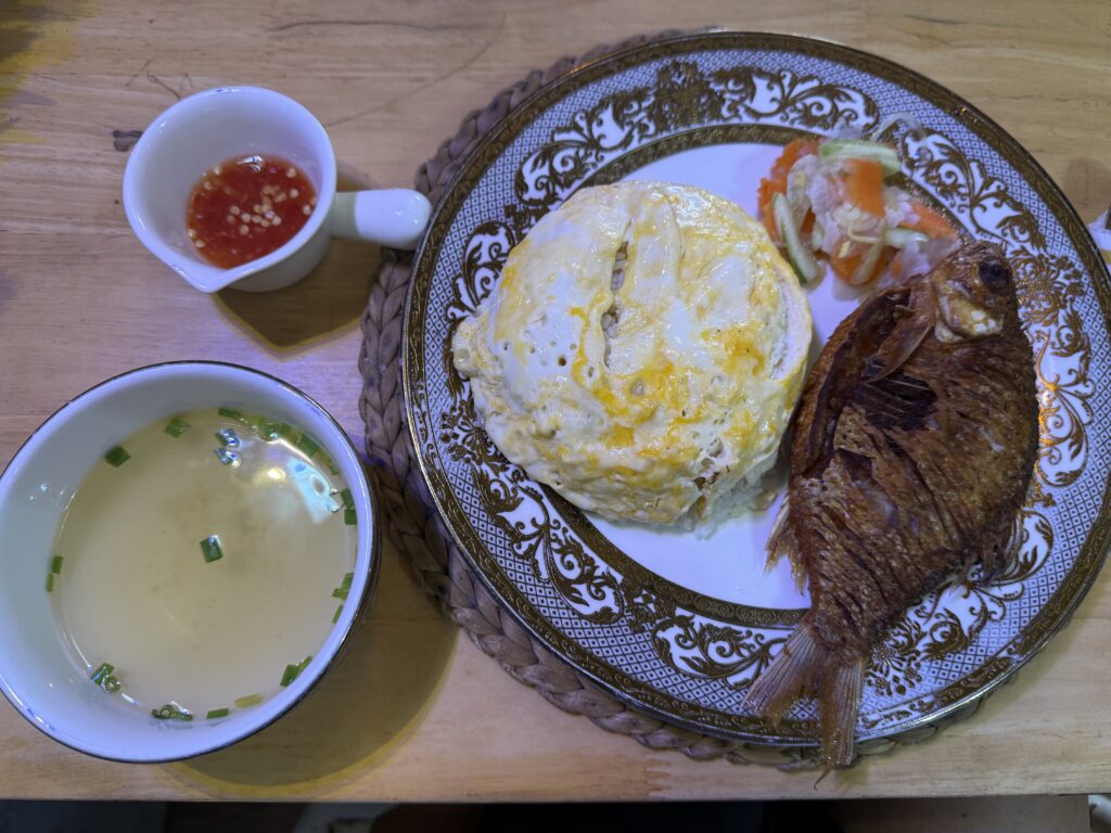 ベストクメールレストランでの魚定食でした。煮魚はあるのかな…