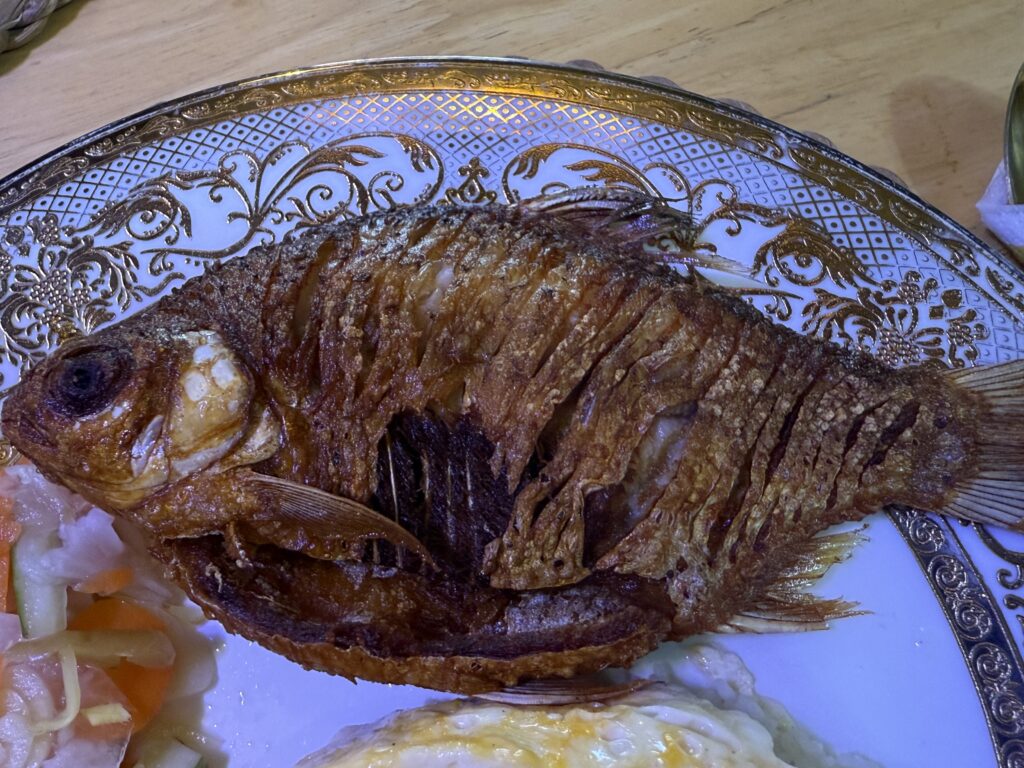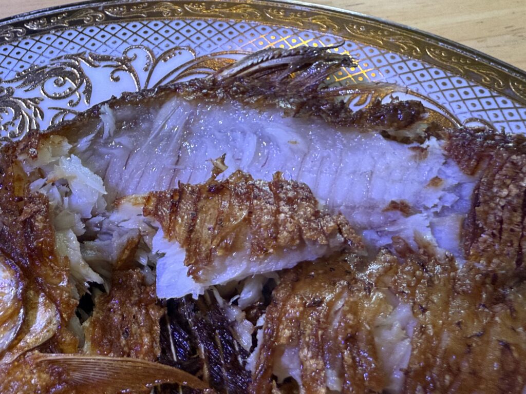 魚は淡水魚っぽいぞ。かりかりに揚げ焼きされています