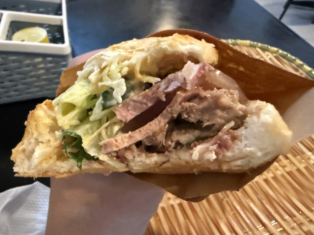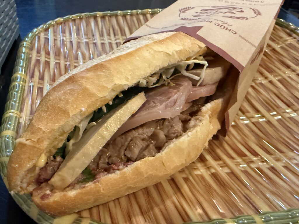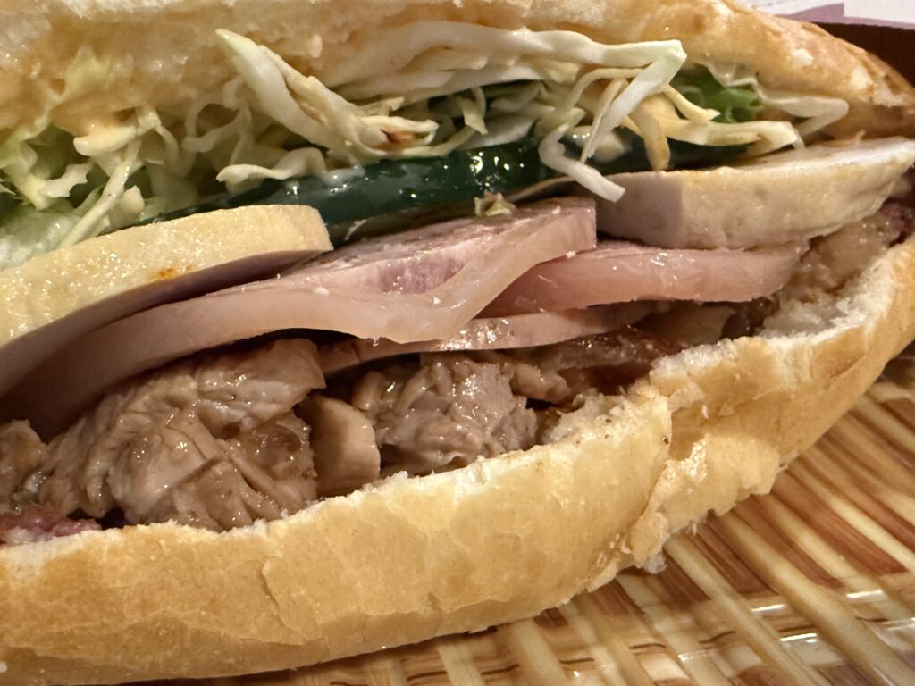 ガブッといった断面。こちらのお店もパンがパリパリしていて、やっぱベトナムのバインミーは旨い