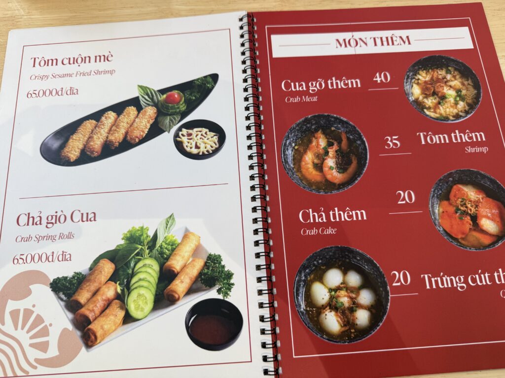 ゆでカニといろいろなソース、右側のページはカニ麺