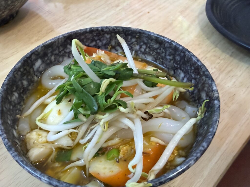 これをみんなでシェアして食べました。麺がぶっとくて、海鮮の出汁がきいていてなかなかおいしい