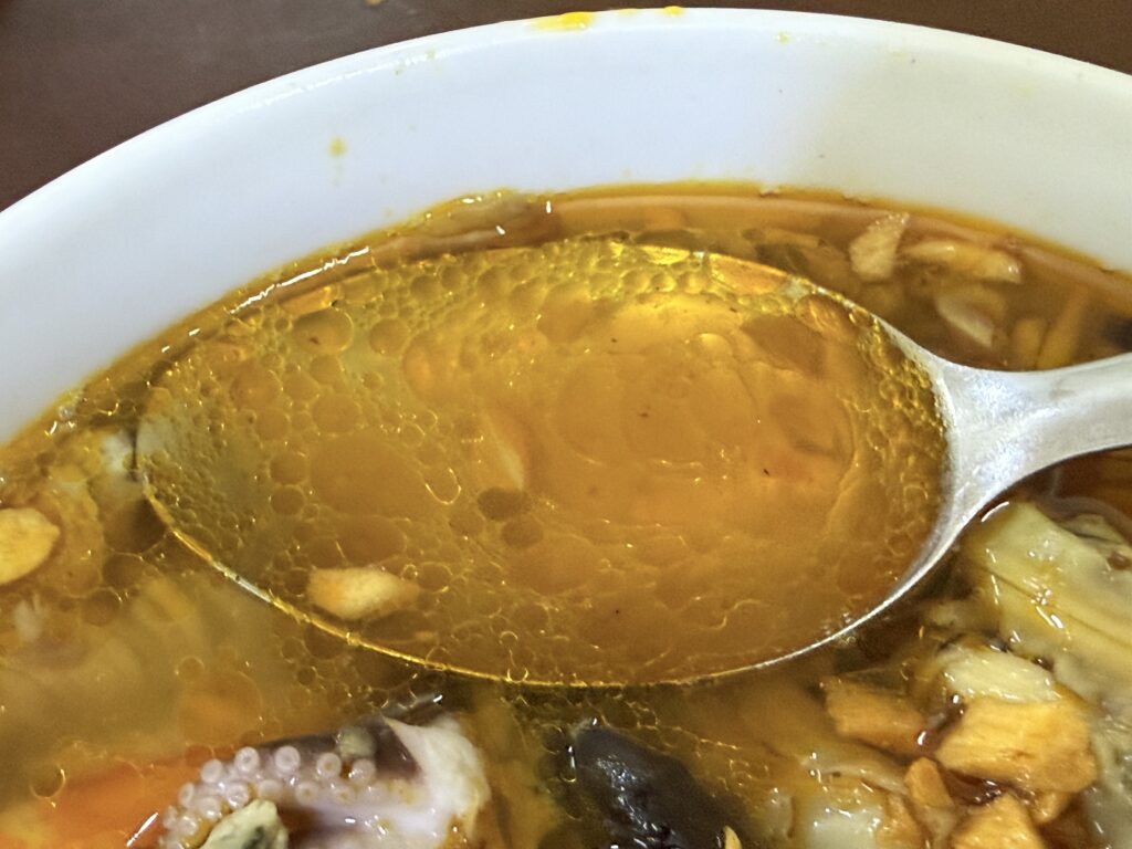 スープはやや甘酸っぱく、ほんの少し辛いもの。海鮮出汁も感じます