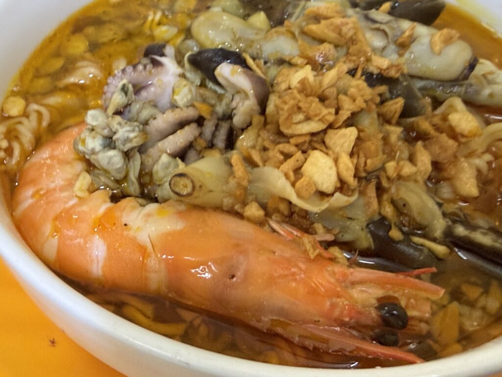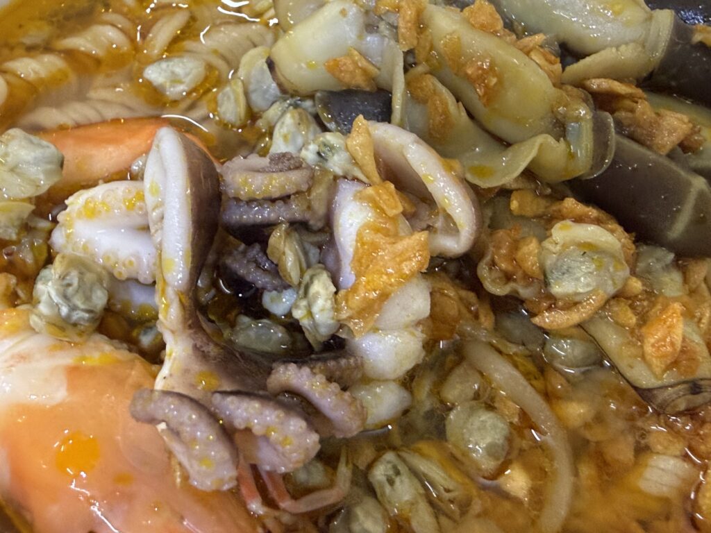 めっちゃ具だくさん。海産物がいっぱいで麺が見えません