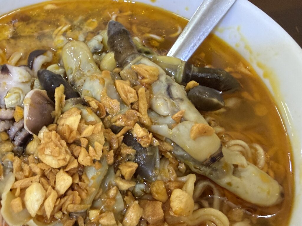 Dì Lanの海鮮麺。なかなかでした。マテ貝としじみが特にいいね。この2種類だけの麺もよさそうだ。