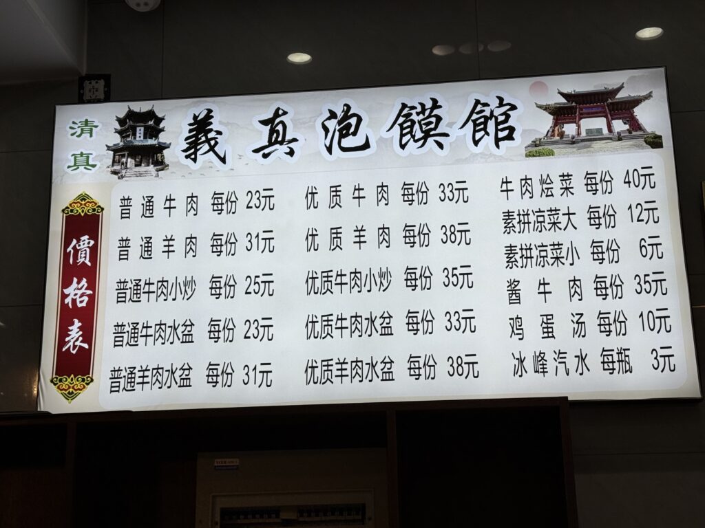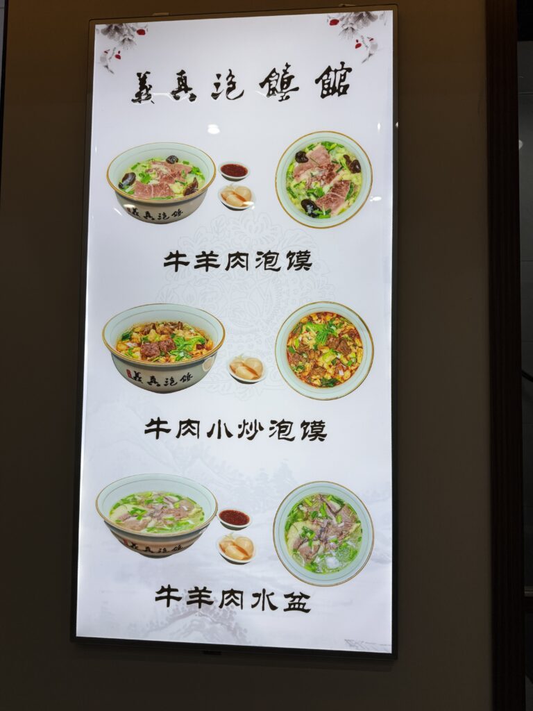 本当は馬洪小炒泡饃というお店を目指したのですが、開いていませんでしたので近くのこちらのお店へ。メニューは泡馍2種類と肉スープ