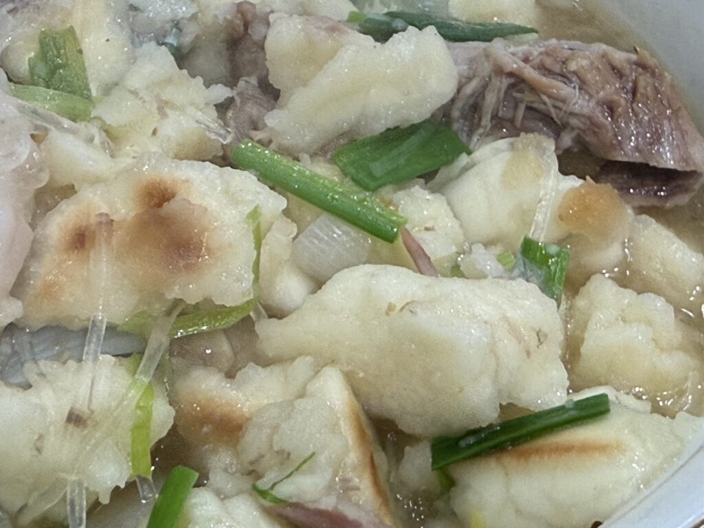 出来上がりました。西安名物羊肉泡馍(ヤンロウパオモウ)です。