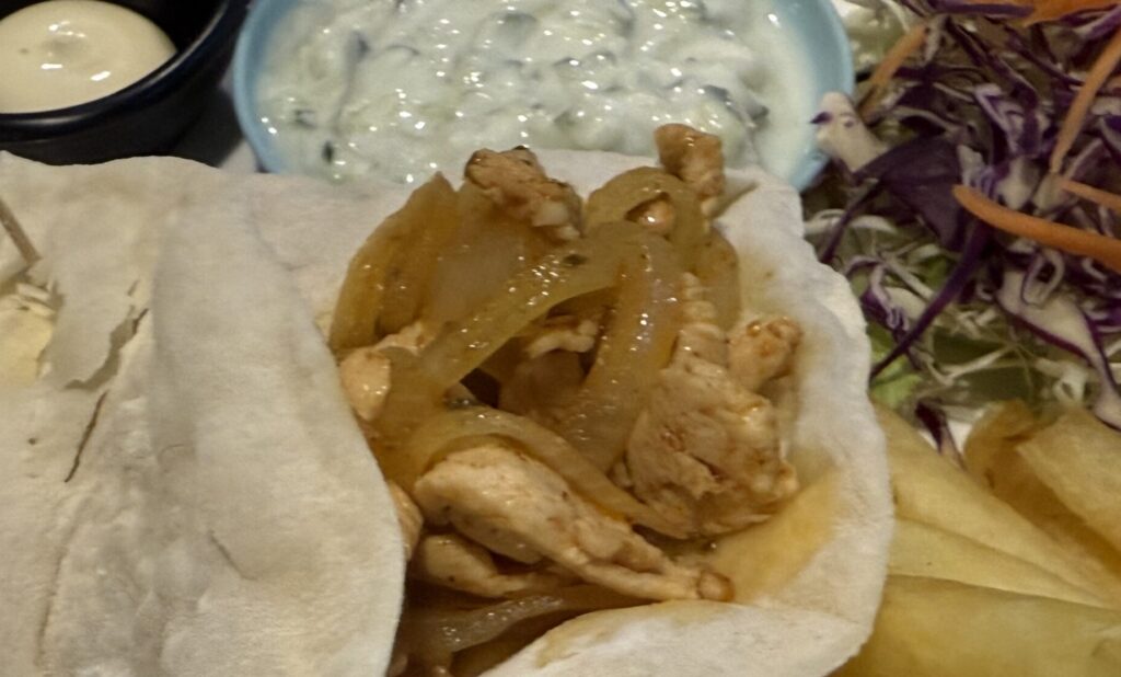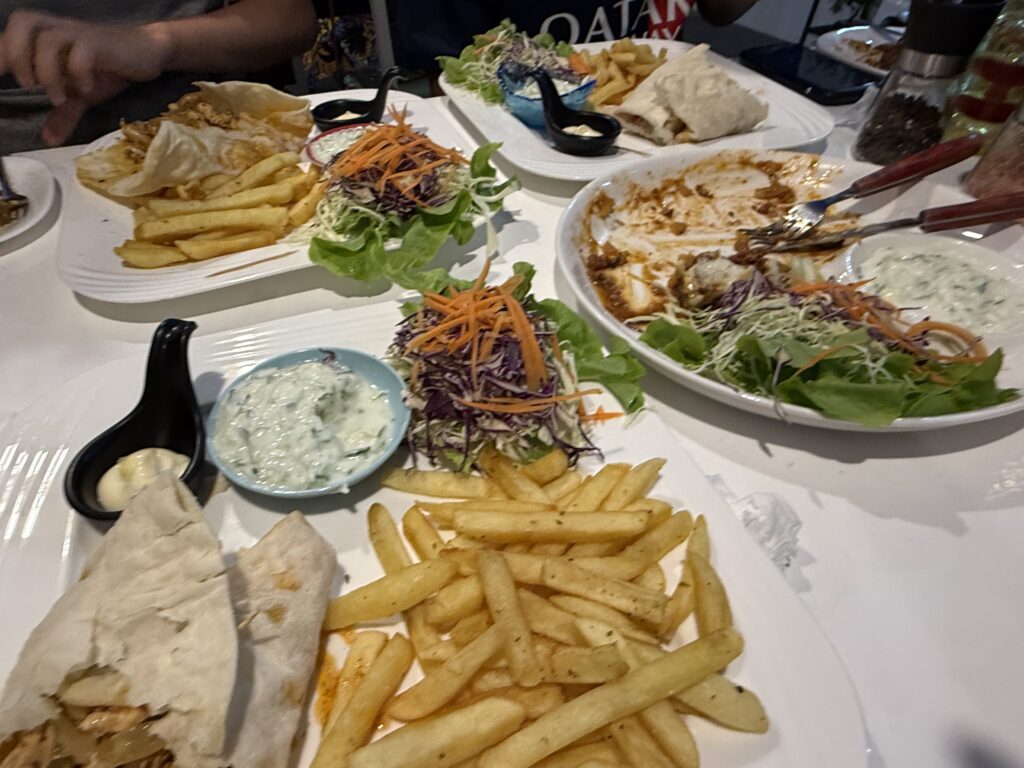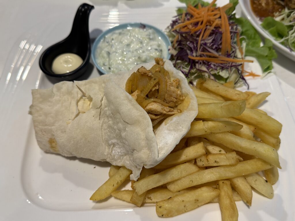 そしてギロスはギリシャのケバブみたいな料理なのですが、肉の削ぎ落としたものではなく、完璧に鶏肉と玉ねぎの炒め物。形状も違う上に、根本的においしくない→必然的に残す