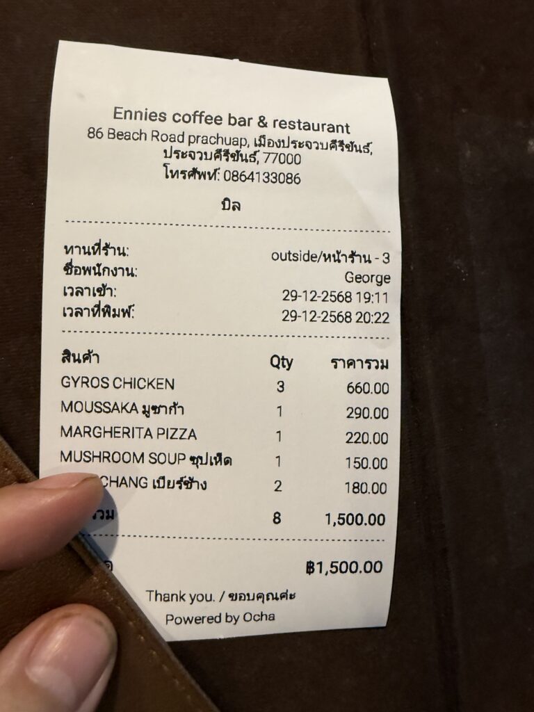 12月29日の夜は、プラチュアップキリカーンにあるグリーク・タベルナというギリシャ料理屋に行きました。