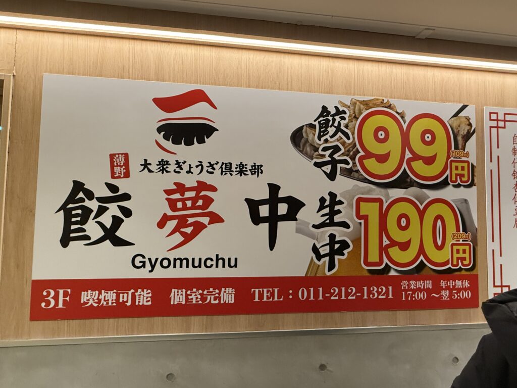 札幌最後の夜も仲間と飲み会です。場所は第3グリーンビルの中の餃夢中です。