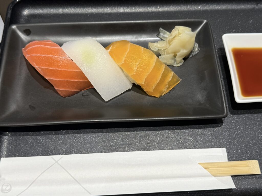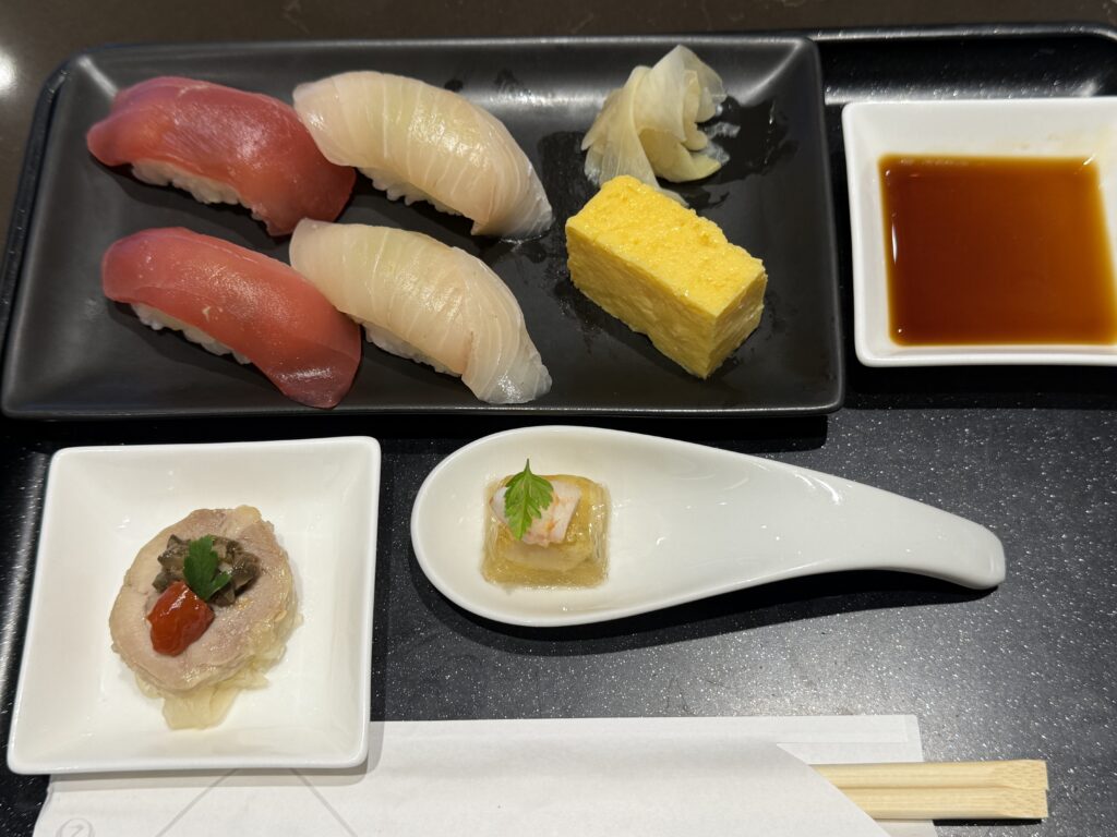 そしてモバイルオーダーしたお寿司。下の階のお寿司よりもなぜか美味しく感じる