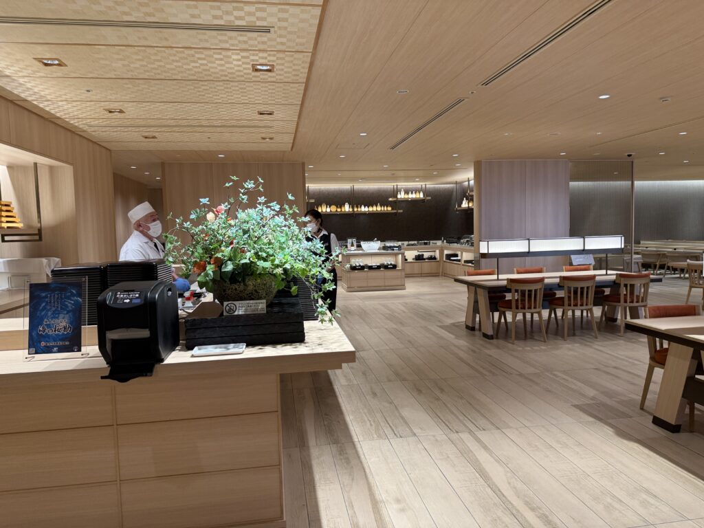 ダイニングエリア。いつも行っているサクララウンジと比べてぜんぜん空いている