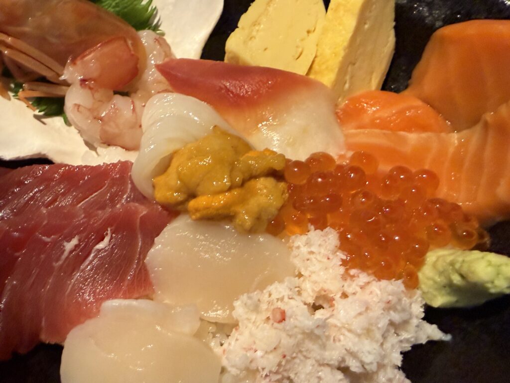 ボタンエビ、ホッキ貝、イカ、まぐろ、ホタテ、カニ、いくら、サーモン、玉子と充実