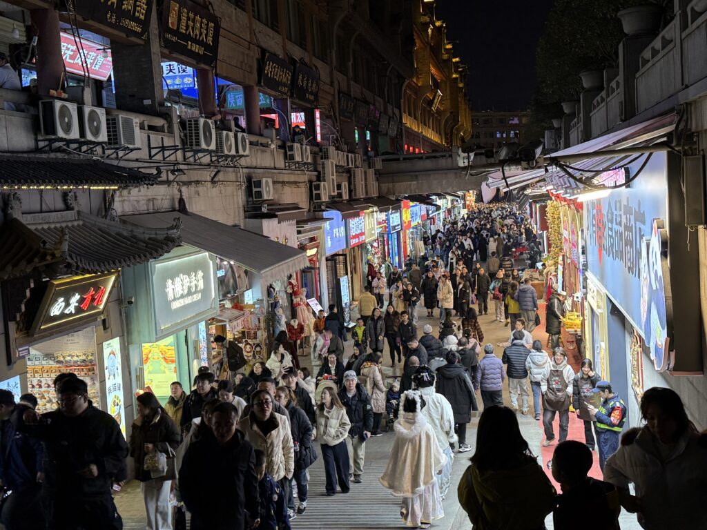 その鼓楼の裏のめっちゃにぎやかな通りを行きます