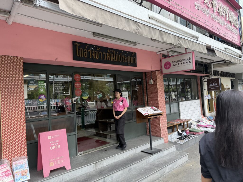 途中にピンクのカオマンガイの支店があります。こちらはインドアでエアコンがきいています