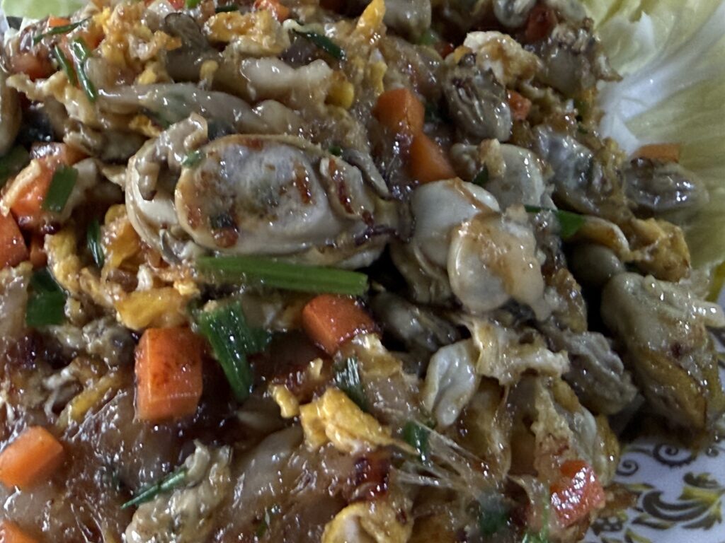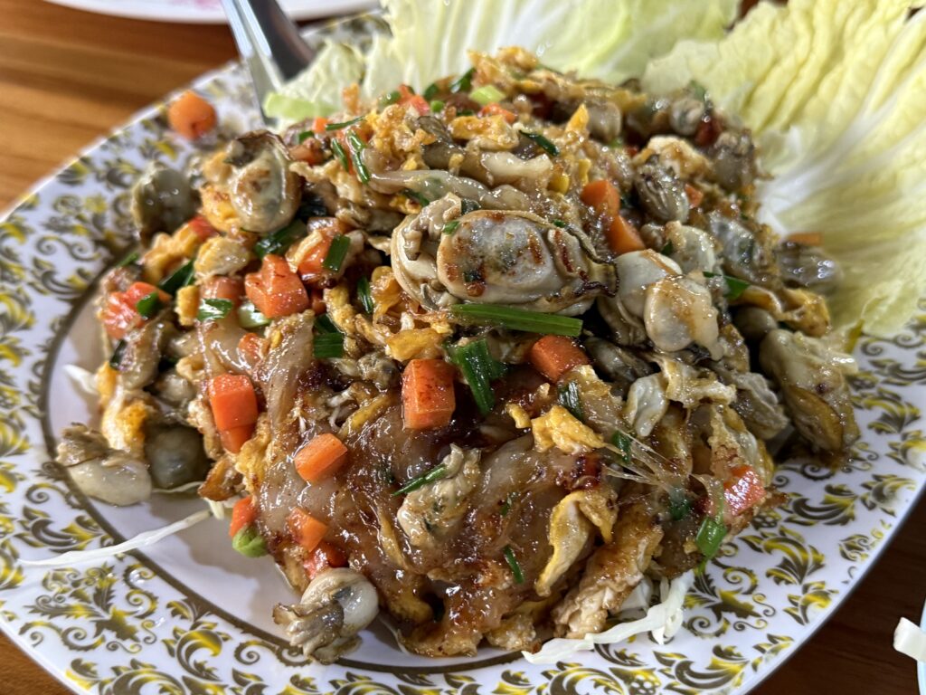 牡蠣のたまご炒めだけど、まったく予想もしないようなプレゼンテーションで登場