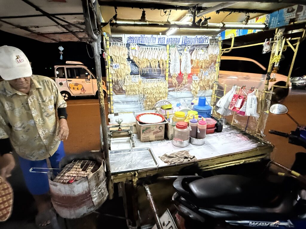 海沿いの屋台でイカを食べようとリーダーが言う。ということでのしいかを発注