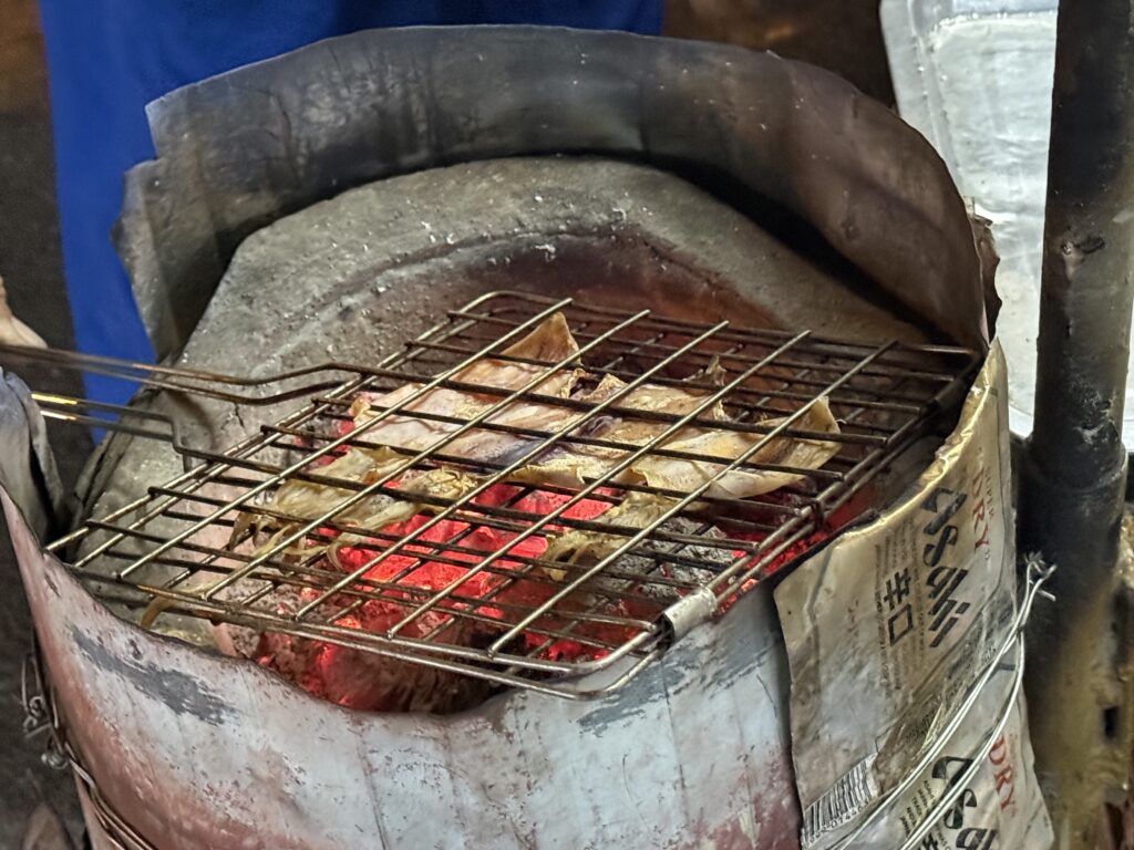 炭火で焼いて…