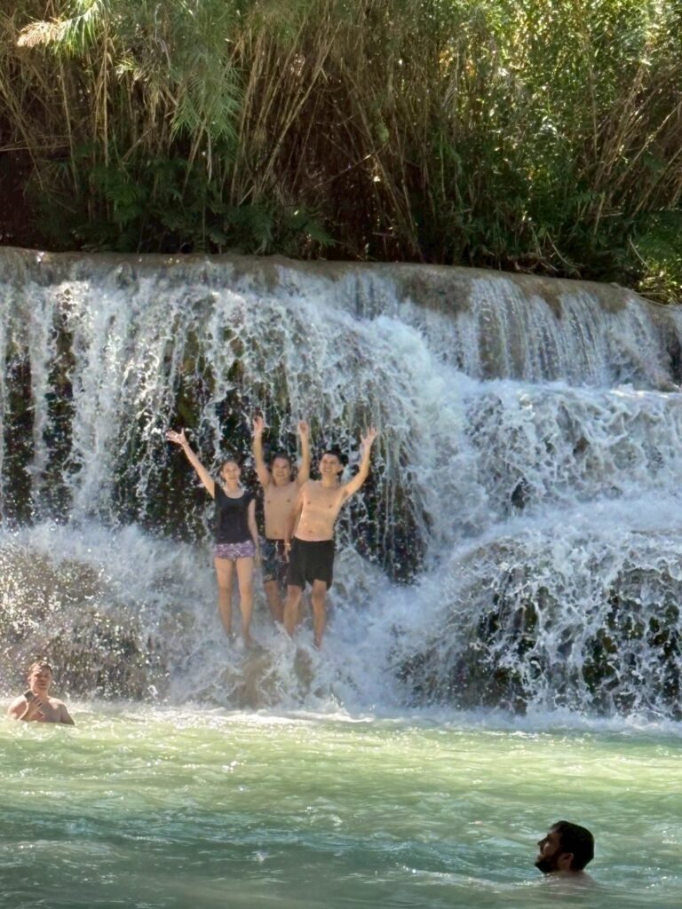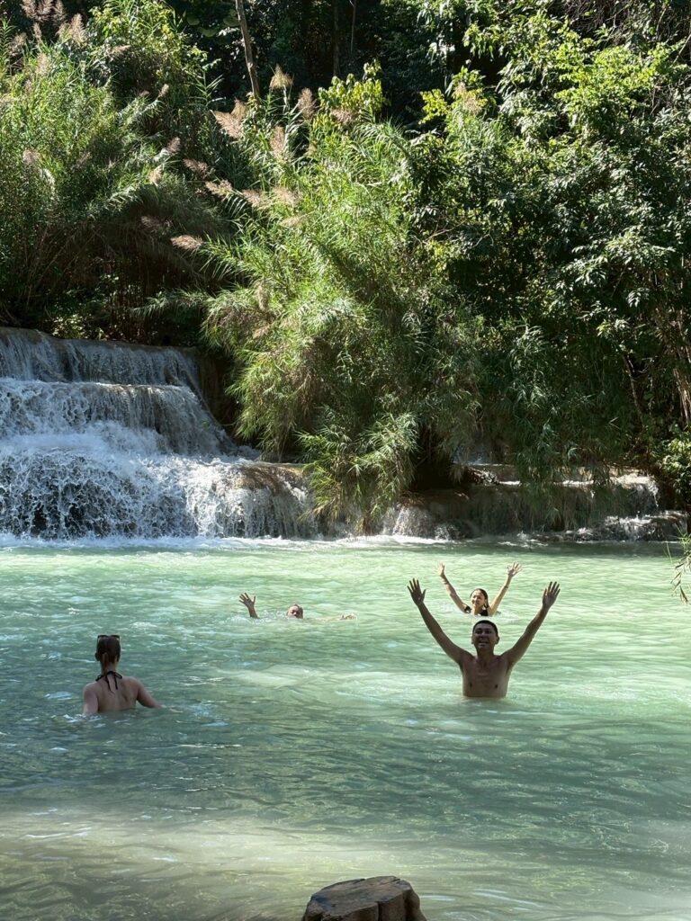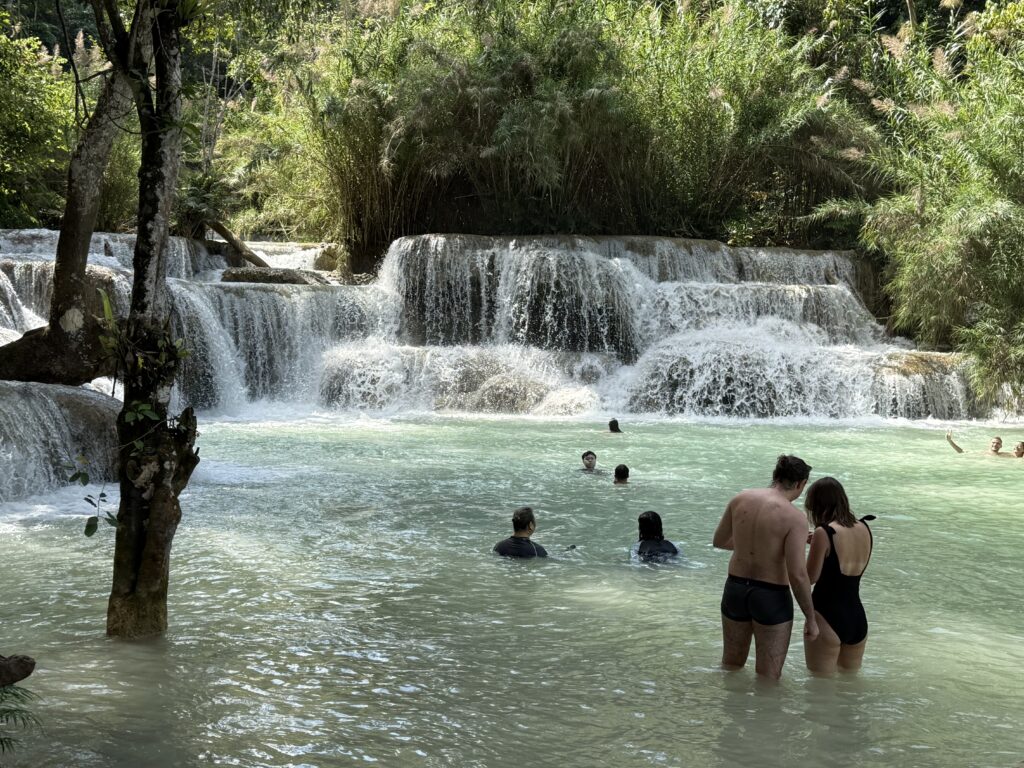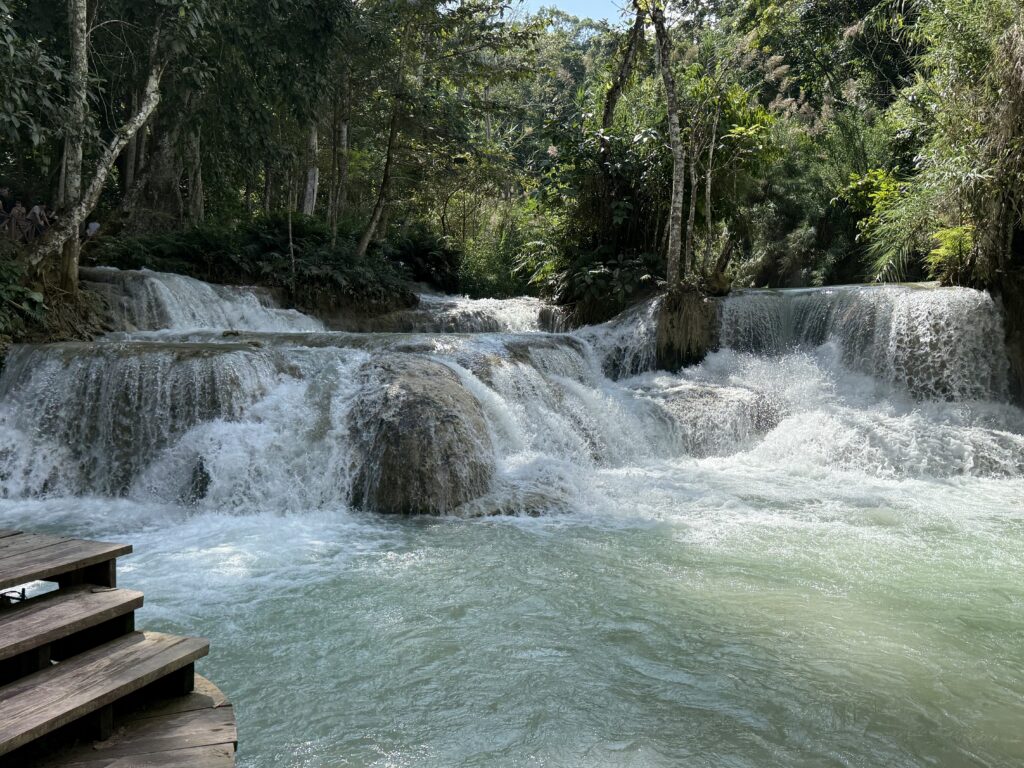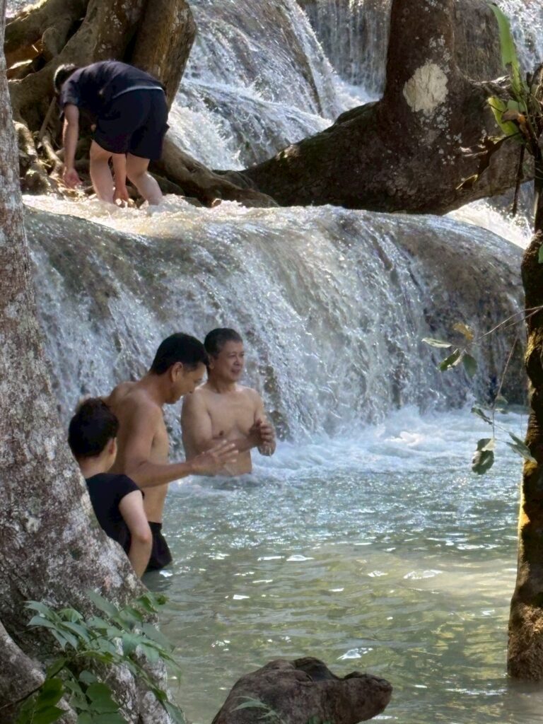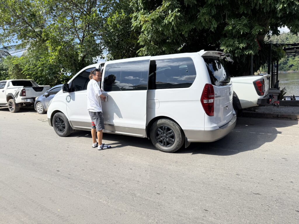 この日は乗り合いバスでクアンシーの滝へ行きます。時間通りにバスの運転手が迎えに来ました