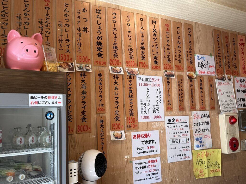 壁のメニュー。かつ丼もひかれますわー