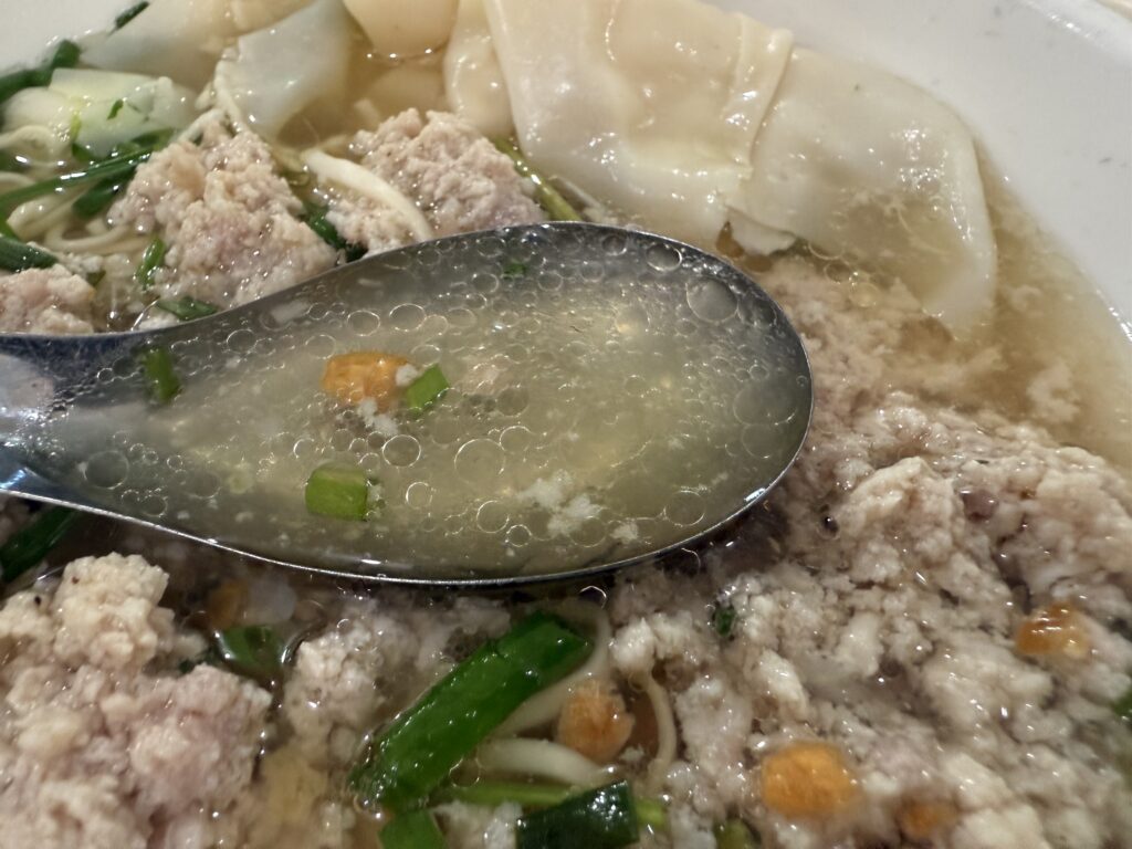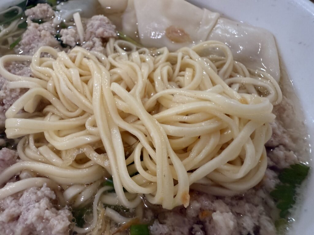テーブル席へ。豚肉麺はやはり売り切れで、豚ひき肉麺を発注しました。