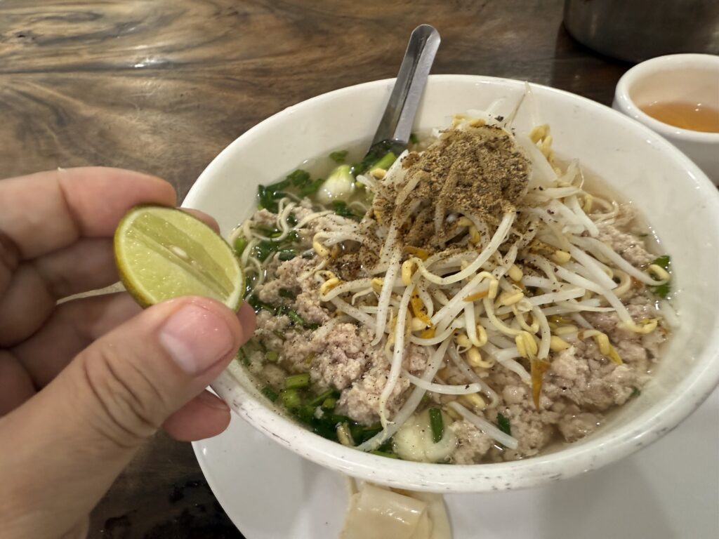 ここにもやしを全部のせて、黒胡椒を振り、ライムを絞る