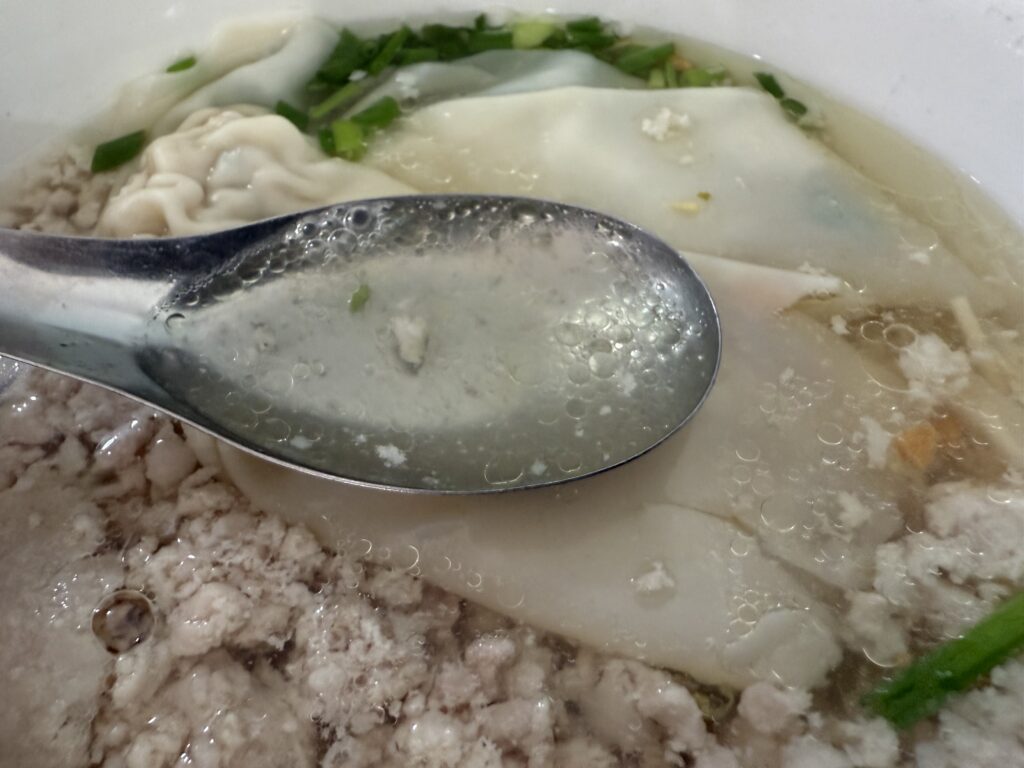 謎麺。この店ではこのスープに対して、米麺よりもこの謎麺の方がおいしいという結論に最近達しました
