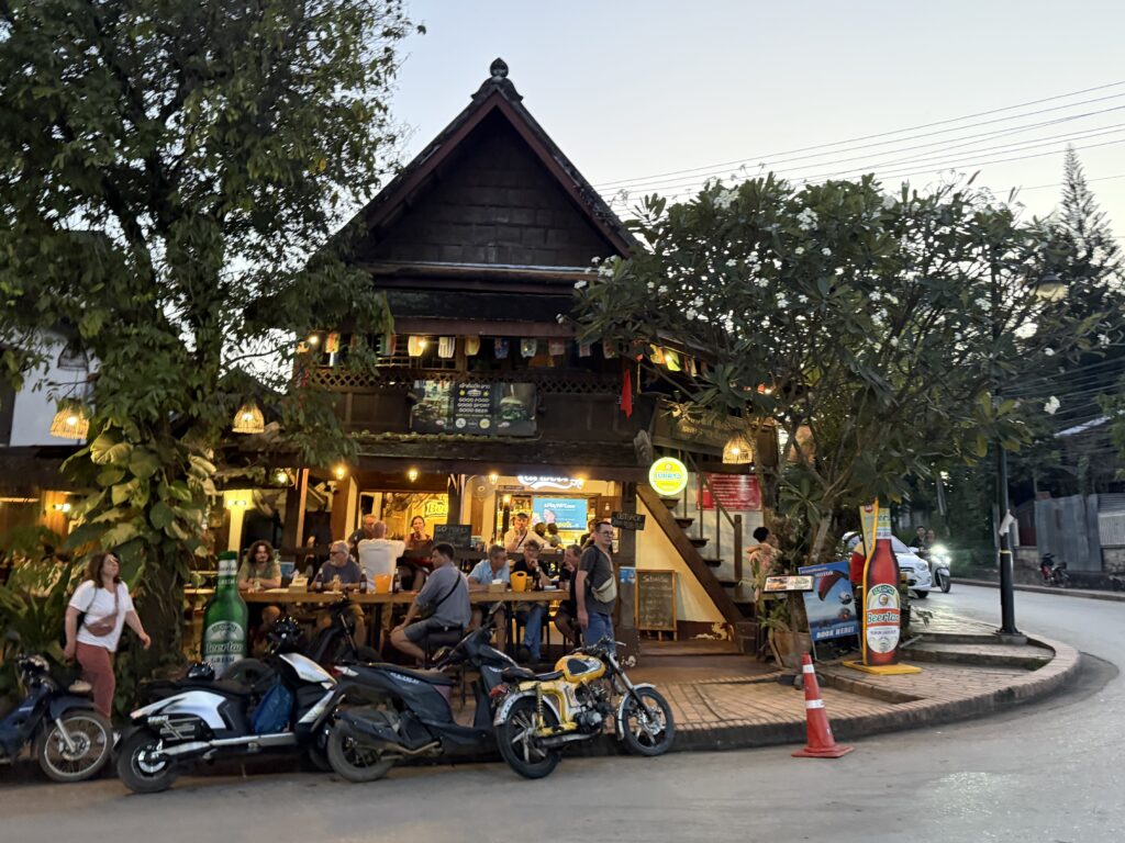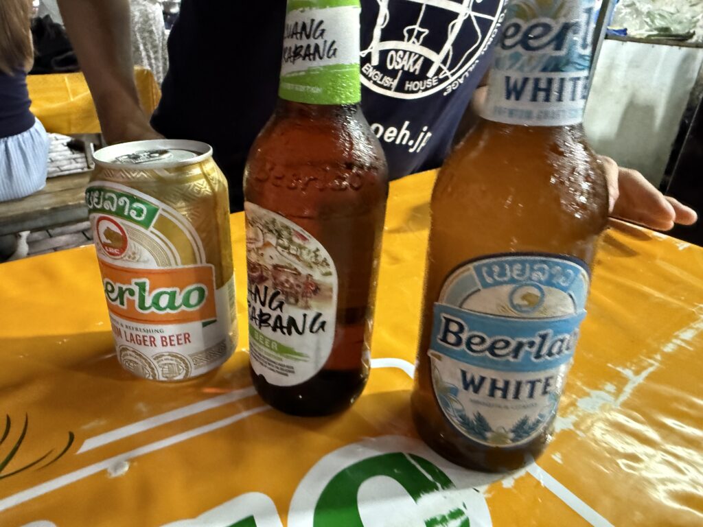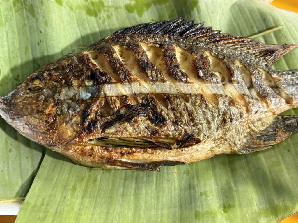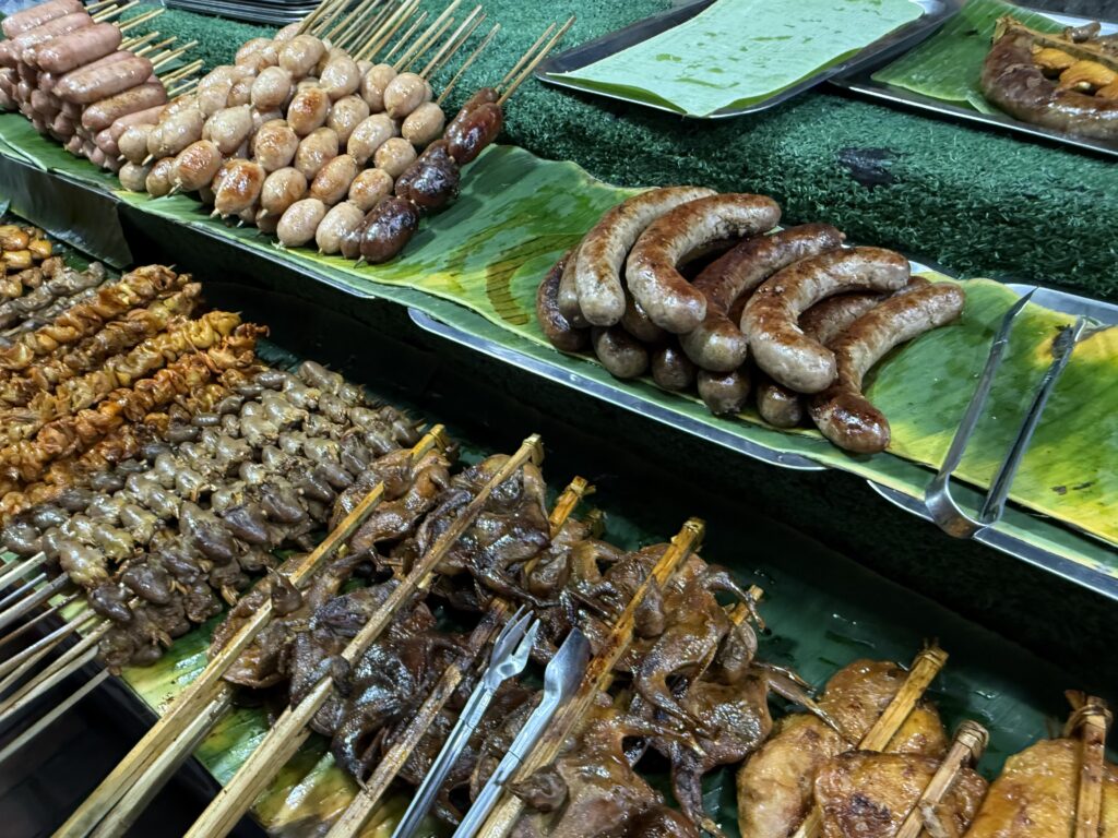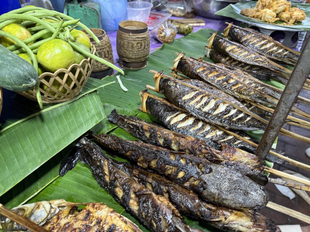 屋台でお肉や魚を注文して、ビヤラオといっしょに楽しみ似ました
