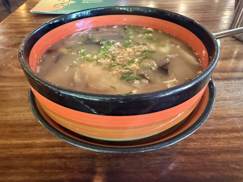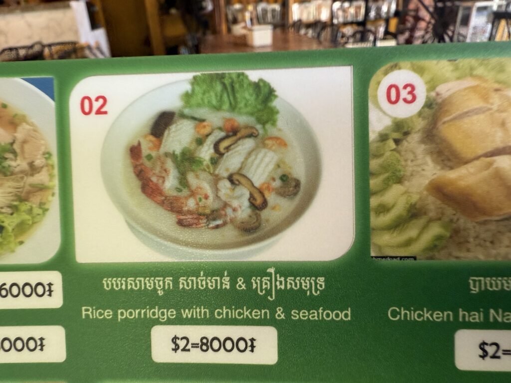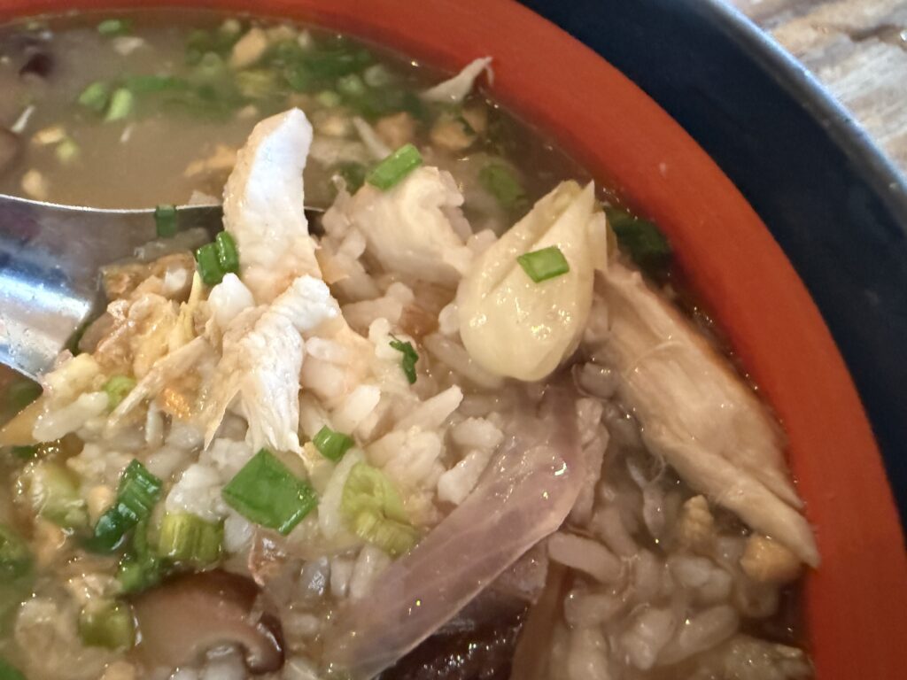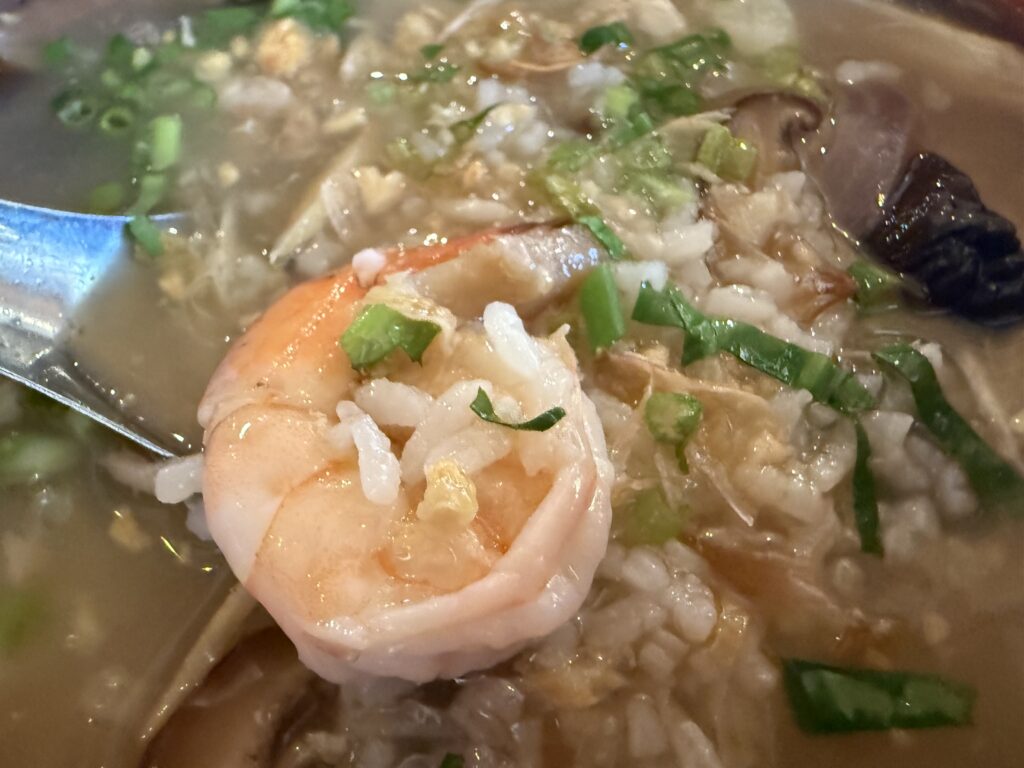 いつもの海鮮粥を注文します。この写真のようなお粥が来るわけではないのがミソ
