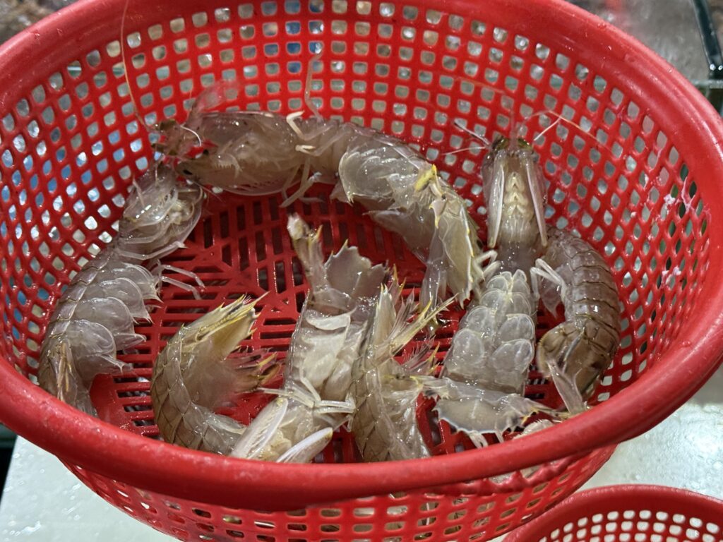 シャコとはまぐりも選びました。口頭で料理法を指定します