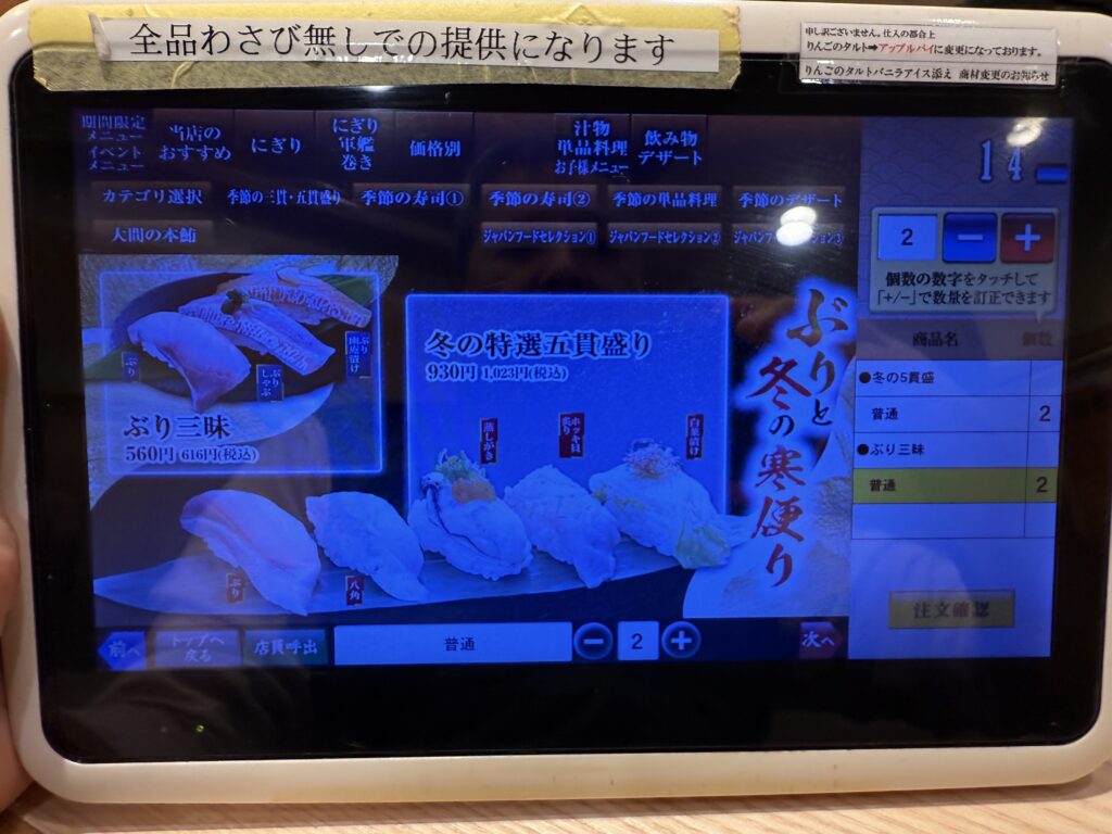 こんな感じで回っていない回転寿司で豪遊しました。前回に引き続き、二人で1万円ちょいで、ニコニコ優待払いでした。