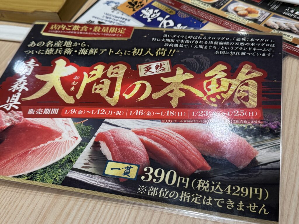 枚方の友だちリクエストで株主優待ランチにで、茨木のイオンモールにあるにぎりの徳兵衛に行きました。